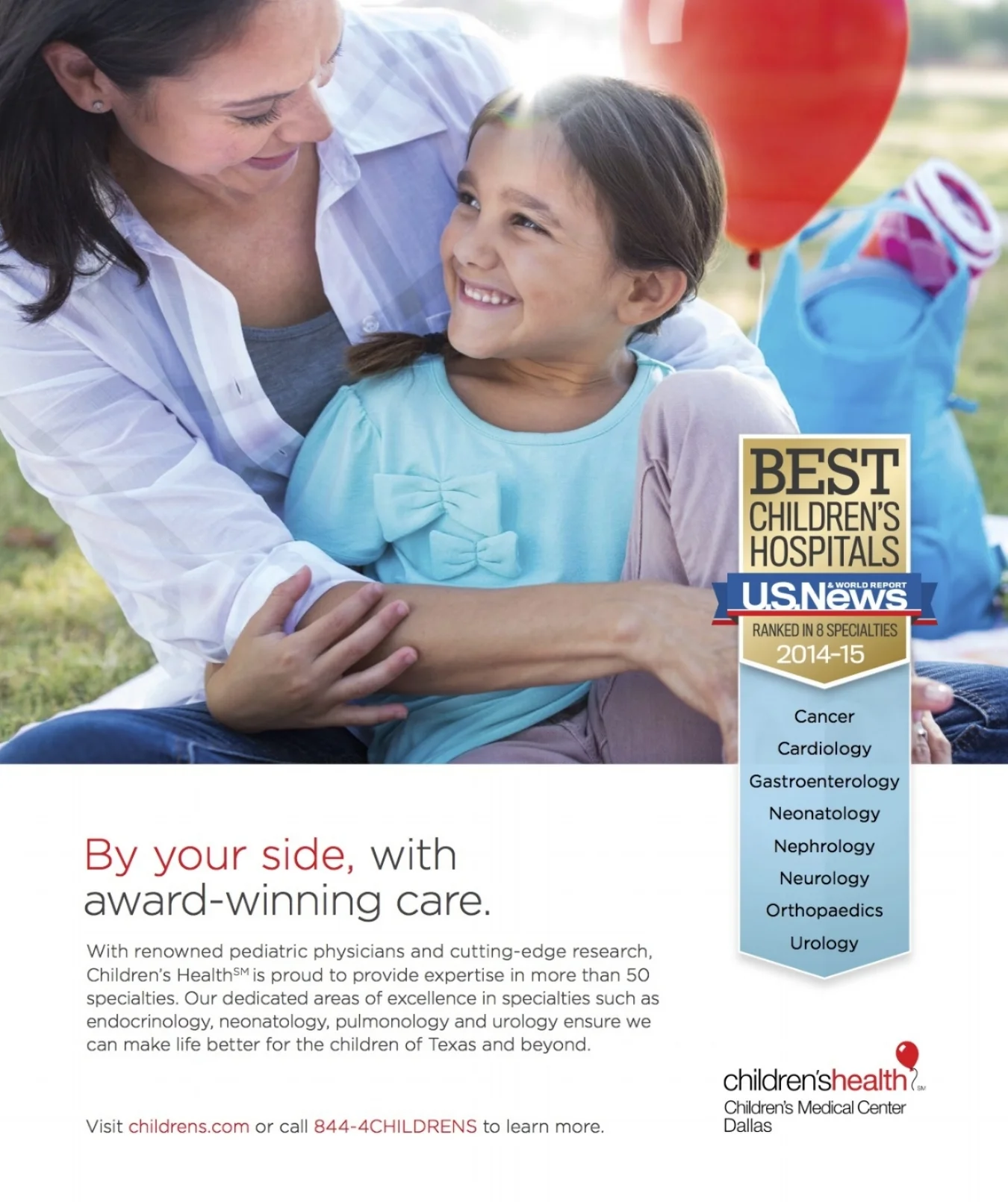 I worked on the Children's Health brand from January 2015 through May 2016. During that time I worked on the 2015 brand TV campaign. To prove that Children's Health is mom's ally in making health care decisions, we used Mom's POV to connect with moms emotionally. As a member of the creative team, I participated in concepting, writing, producing and editing this campaign, which is currently nominated for a Hospital National Marketing award. See the 30 second spot above.
